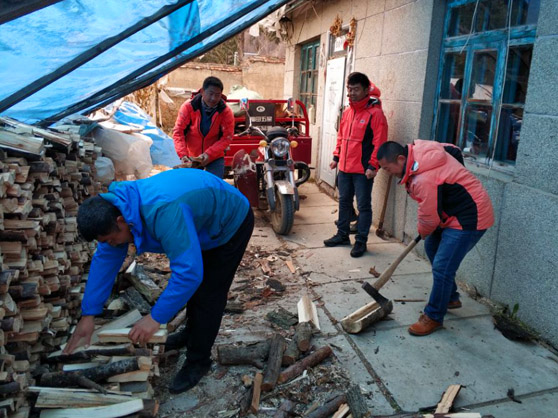 在看到整齊的柴火垛和整潔的院落,老人高興地留下感激的淚水,直說(shuō)“還是共產(chǎn)黨好啊”!程國(guó)防經(jīng)理安慰老人說(shuō)“大娘,您孩子不在家,以后有這樣的活您別擔(dān)心,有我們呢,支部會(huì)常來(lái)看您的”。