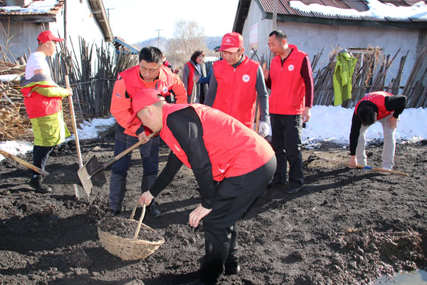 通過觀摩志愿者授旗儀式及醫(yī)療救助等環(huán)節(jié),支部黨員切身體會到了志愿活動的重要意義。隨后,大家來到了社區(qū)所轄的棚戶區(qū),由于入春解凍,這里道路泥濘,支部事先了解這一情況,決定幫助平整路面,方便百姓出行。大家手握鐵鍬挎起筐,擼起袖子彎下腰,將積水引離路面,再用爐渣填整鋪平,你一鍬我一鍬,晶瑩的汗珠在額頭閃閃發(fā)亮,周邊的老百姓熱心給大家送來白開水。你來我往,歷時1個多小時,近1000米的泥濘道路被修整一新。