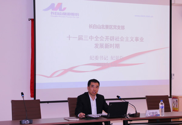 4月16日,公司紀委書記紀景臣深入長白山北景區(qū),在“新時代傳習所”為一線黨員、積極分子講黨課。公司9位中層干部和80多名黨員、積極分子參加了本次會議,會議由北景區(qū)黨支部副書記王慧君主持。