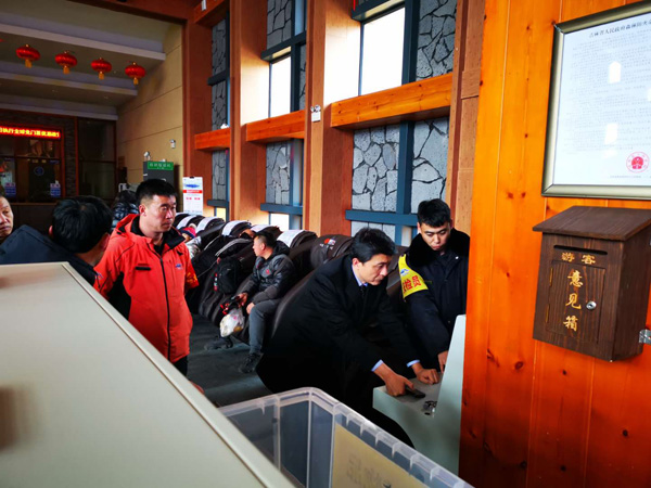 2019年清明節(jié)期間,長(zhǎng)白山開(kāi)發(fā)建設(shè)集團(tuán)、股份公司公司黨委主要領(lǐng)導(dǎo)帶領(lǐng)副總經(jīng)理孫青春、安委會(huì)辦公室、掃黑除惡辦公室到長(zhǎng)白山景區(qū)開(kāi)展安全防火、掃黑治亂調(diào)研,開(kāi)展拉網(wǎng)式檢查督導(dǎo),推進(jìn)掃黑除惡工作落實(shí)落地。